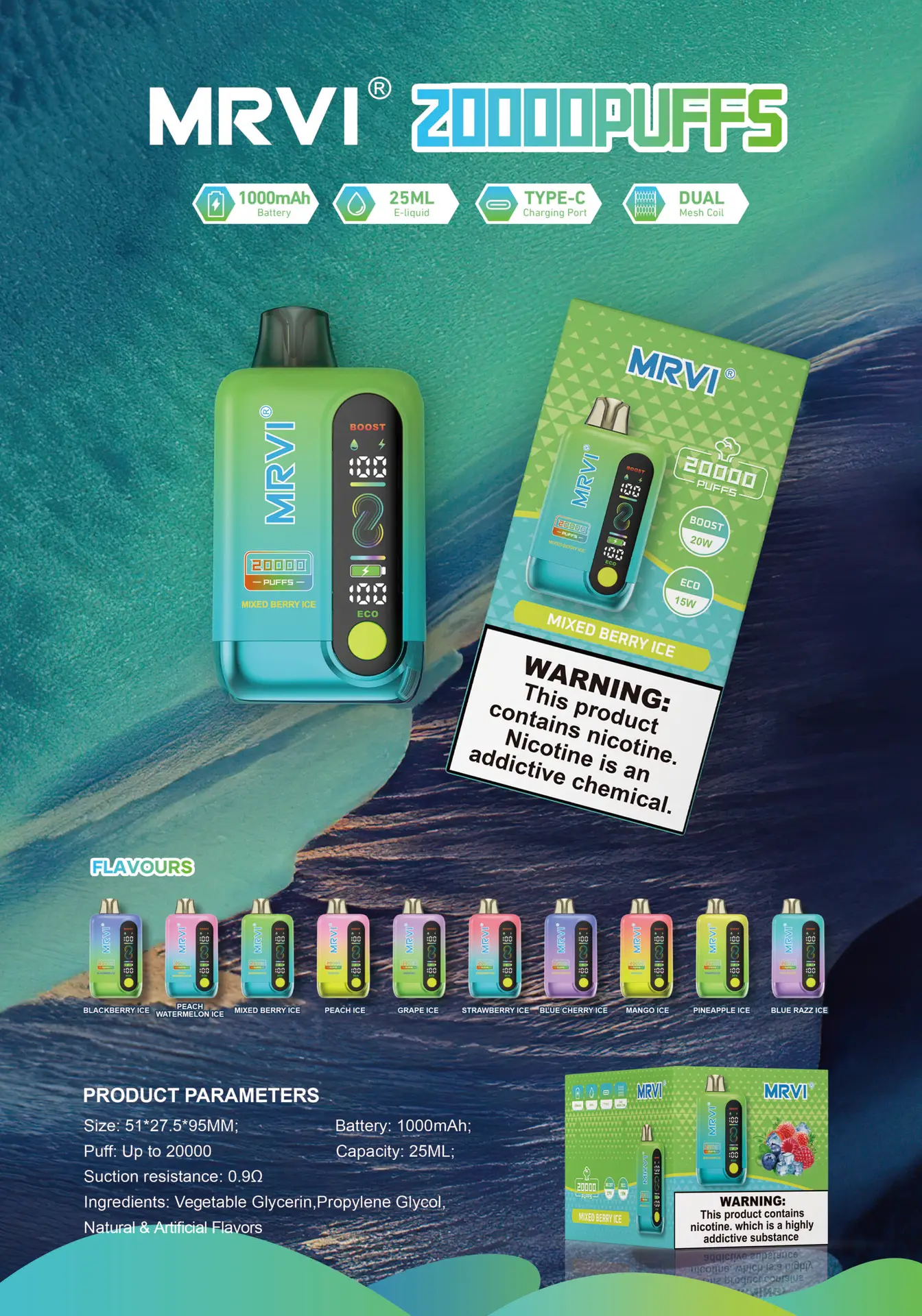 MRVI 20K 20000 Puffs Rechargeable Disposable Vape – Ultimate Flavor & Long-Lasting Performance